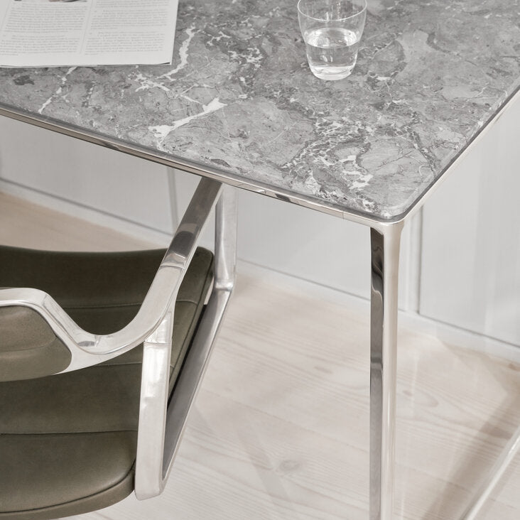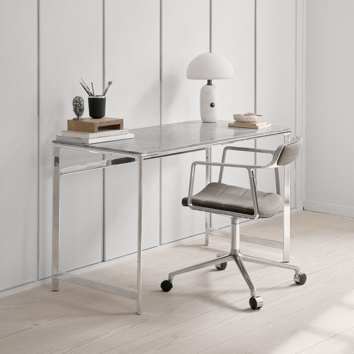 De studio bureau is een compacte en stijlvolle bureau-oplossing, ontworpen voor moderne werk- en leefruimtes. Compact, functioneel en perfect voor thuiswerkplekken of creatieve ruimtes. Deze bureau is een perfecte balans tussen design en functionaliteit, en past naadloos in diverse interieurs. Kleur: grijs Materiaal: Gepolijst aluminium & marmer Afmetingen: H: 73 cm -...