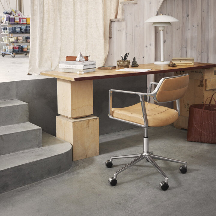 De Swivel met wielen in Camel is een verfijnde en functionele toevoeging aan elke moderne inrichting. Deze elegante stoel combineert tijdloos Deens design met optimaal zitcomfort en hoogwaardige materialen. Dankzij de 360° draaibare zitting biedt de Swivel met wielen een vloeiende, soepele beweging, perfect voor zowel de eetkamer als de vergaderruimte....