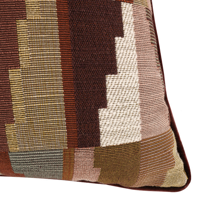 Met een artistiek geometrisch patroon met unieke wendingen en lijnen, is het Zamari-kussen gemaakt van een rijke tapijtstof. Geweven met een fijne ottomanbinding, zit deze stof vol bijzondere details die de authentieke kenmerken van een traditioneel tapijttextiel weerspiegelen. Afmetingen: 50 x 50 cm Kleur: multi kleuren Materiaal: 100% polyester