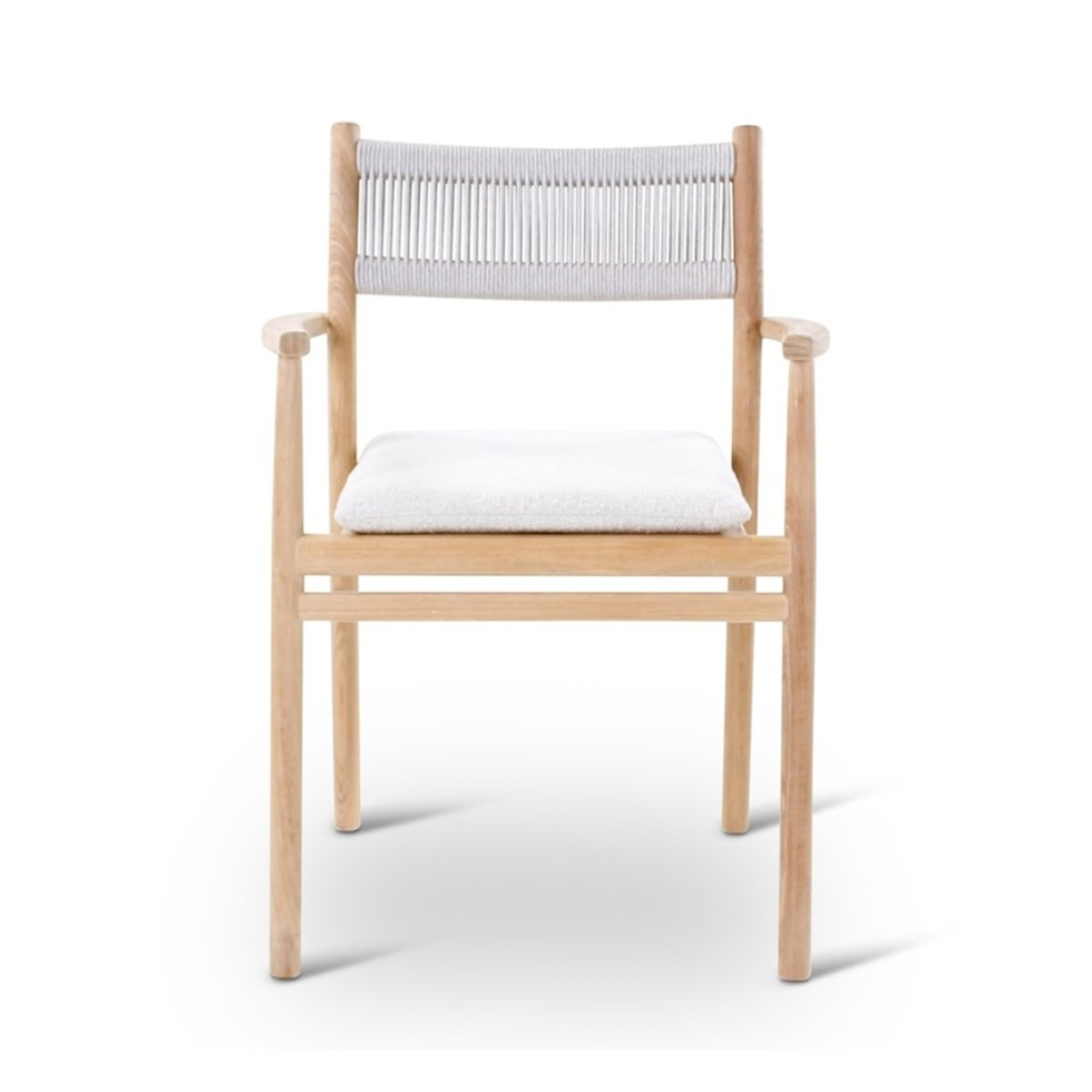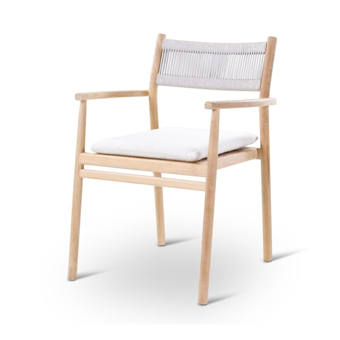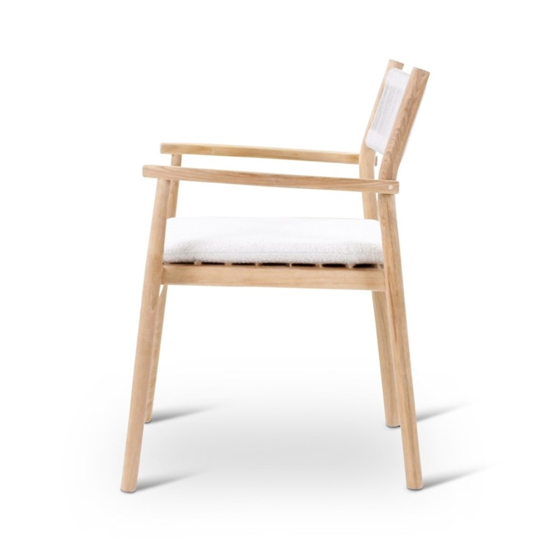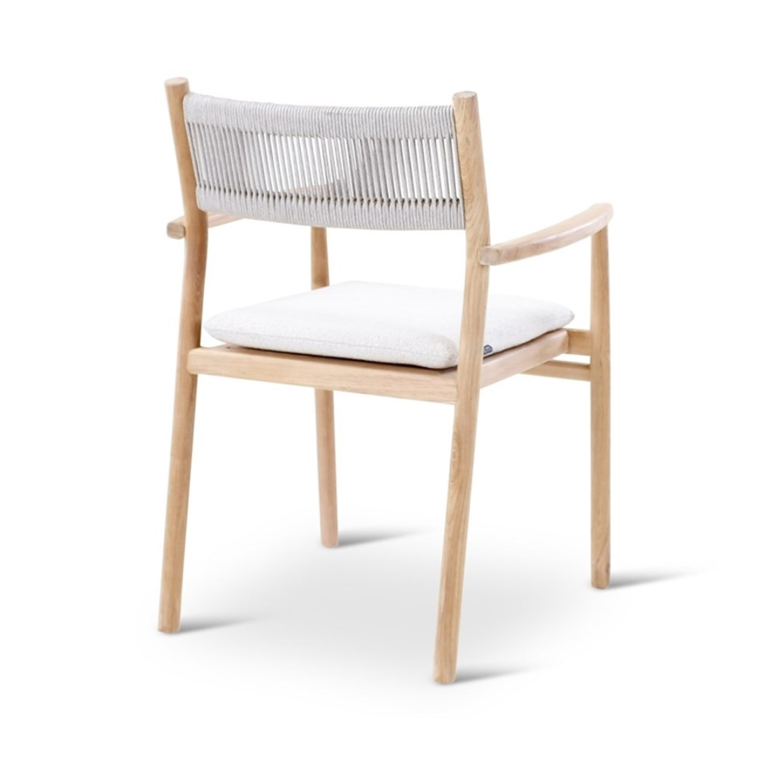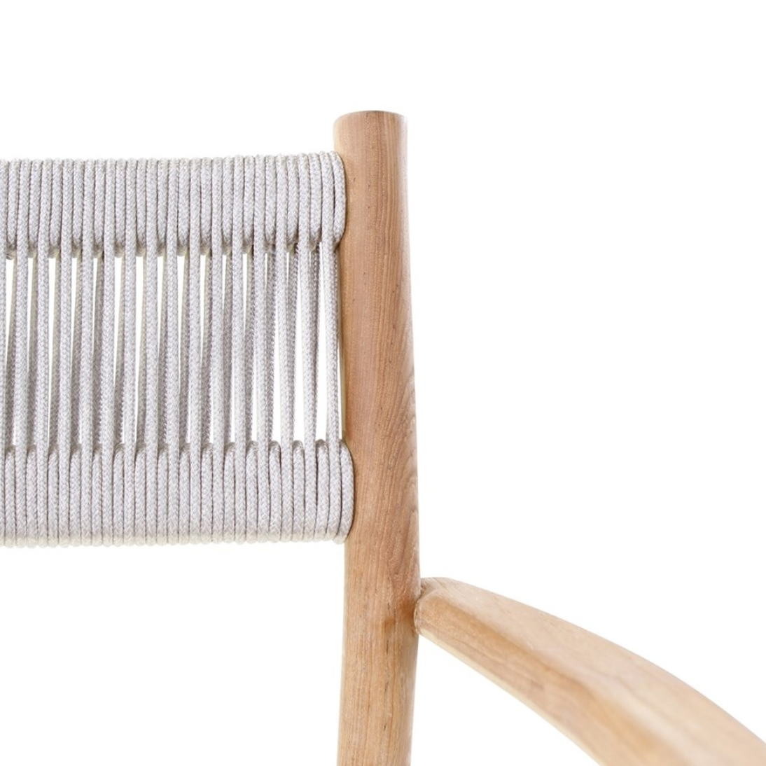 Afmetingen: lengte: 59 cm - breedte:56 cm - hoogte: 78 cm Materiaal: teak naturel met beige weving incl kussen crème