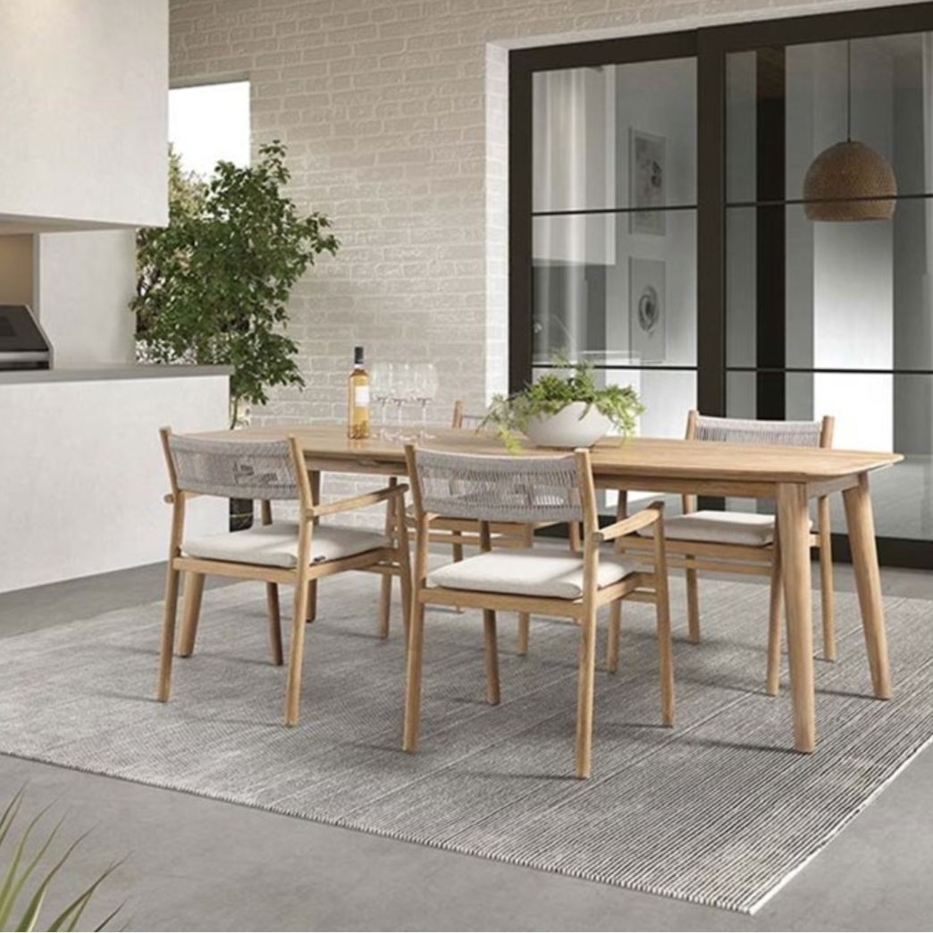 De loy stoel is in natuurlijk teak met grijs vlechtwerk en een kleikleurig kussen – combineert natuurlijke elegantie, comfort en duurzame materialen. Het teakhouten frame zorgt voor een warme uitstraling, terwijl het grijze vlechtwerk een moderne touch geeft. Het zachte kussen maakt de stoel extra comfortabel voor lange ontspanningsmomenten. Of...