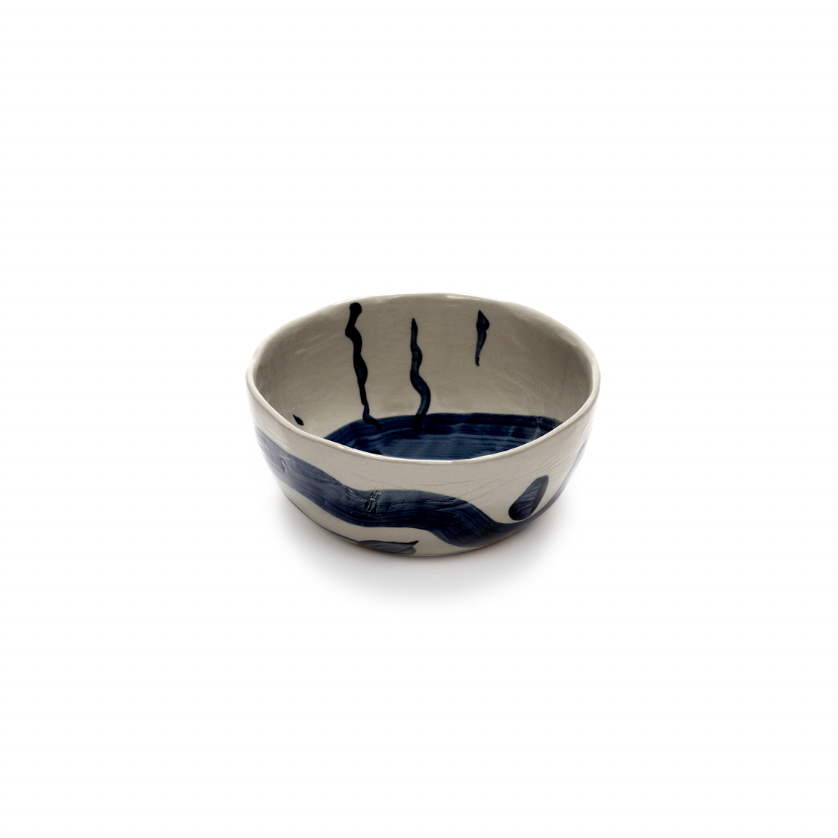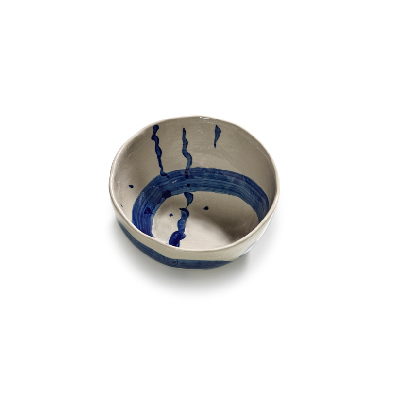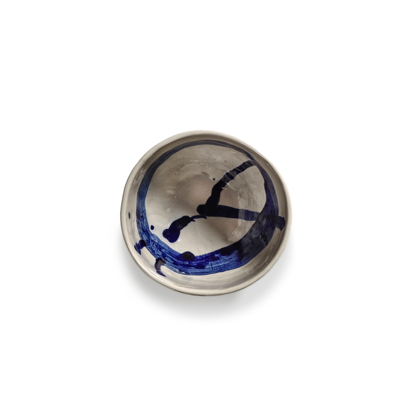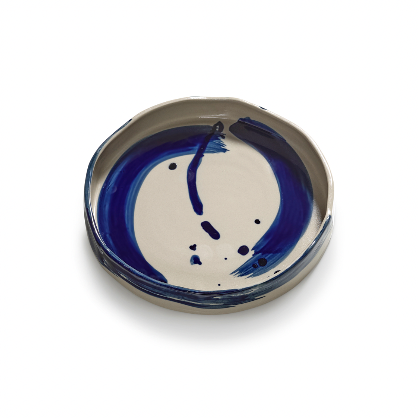 Alle Sophia-objecten hebben onregelmatige, intuïtieve vormen en worden door Marie Michielssen zelf met de hand beschilderd. De spontane, energieke tekeningen in blauwe inkt zijn geïnspireerd op oosterse kalligrafie, waarbij de inspiratie van het moment centraal staat. Dankzij het intensieve handwerk vertoont elk object unieke imperfecties, waardoor elk stuk bijzonder is....