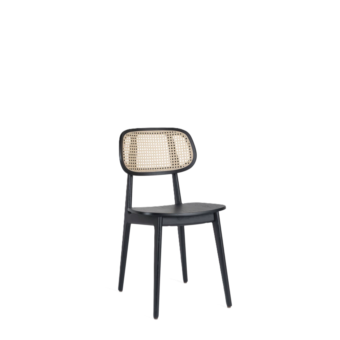 Een verfijnde eetkamerstoel met prachtig geweven canage en een houten frame. Afmetingen: hoogte: 84 cm - breedte: 44 cm - diepte: 51 cm Materiaal : Beuk / canage Cannage zitting en ruggensteun van beukenfineer met frame van massief beuk.