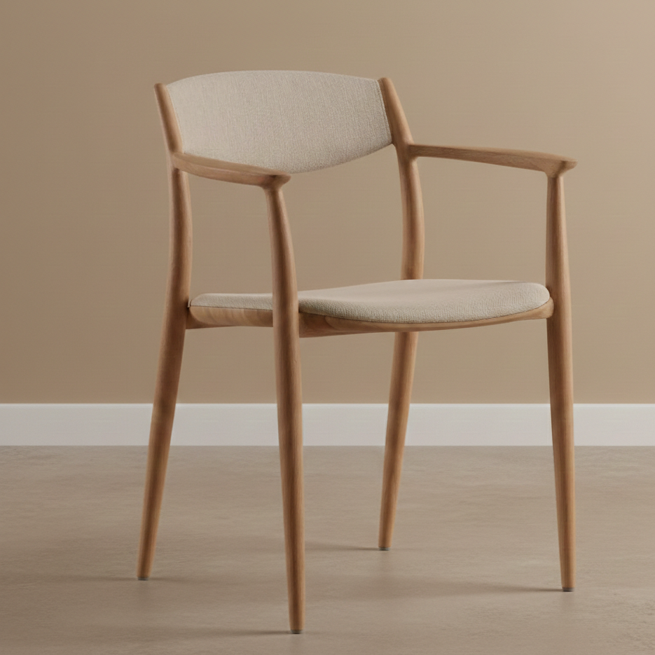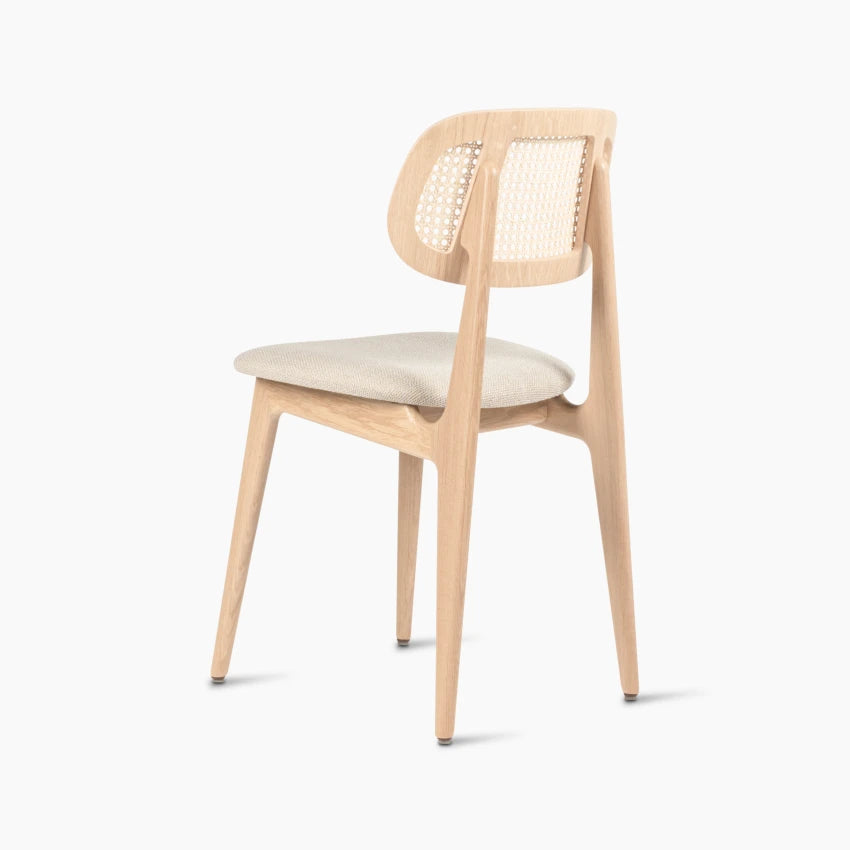 Een prachtige combinatie van tijdloos design en veelzijdige esthetiek. Kies uit houten of metalen poten, zodat u de stoel kunt aanpassen aan uw gewenste esthetiek. De gestoffeerde zitting en rugleuning bieden een extra laag comfort en verfijning, waardoor de eet- of leefruimte wordt opgetild met een harmonieuze balans tussen vorm...