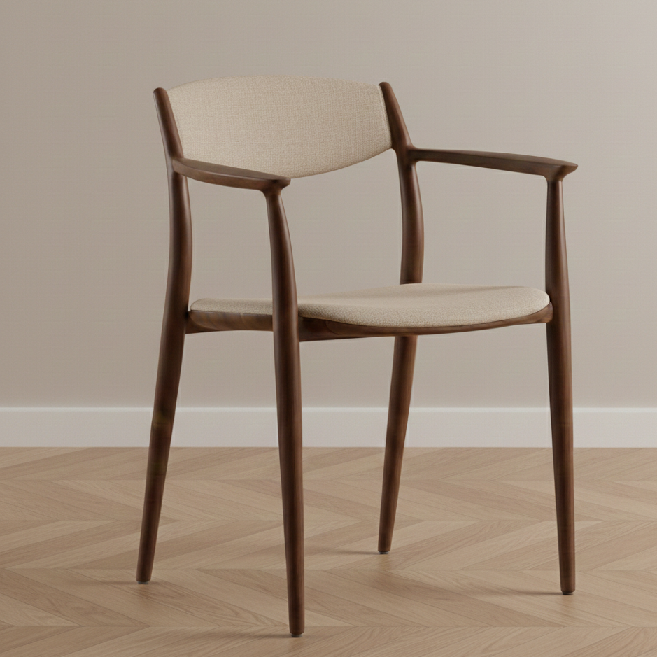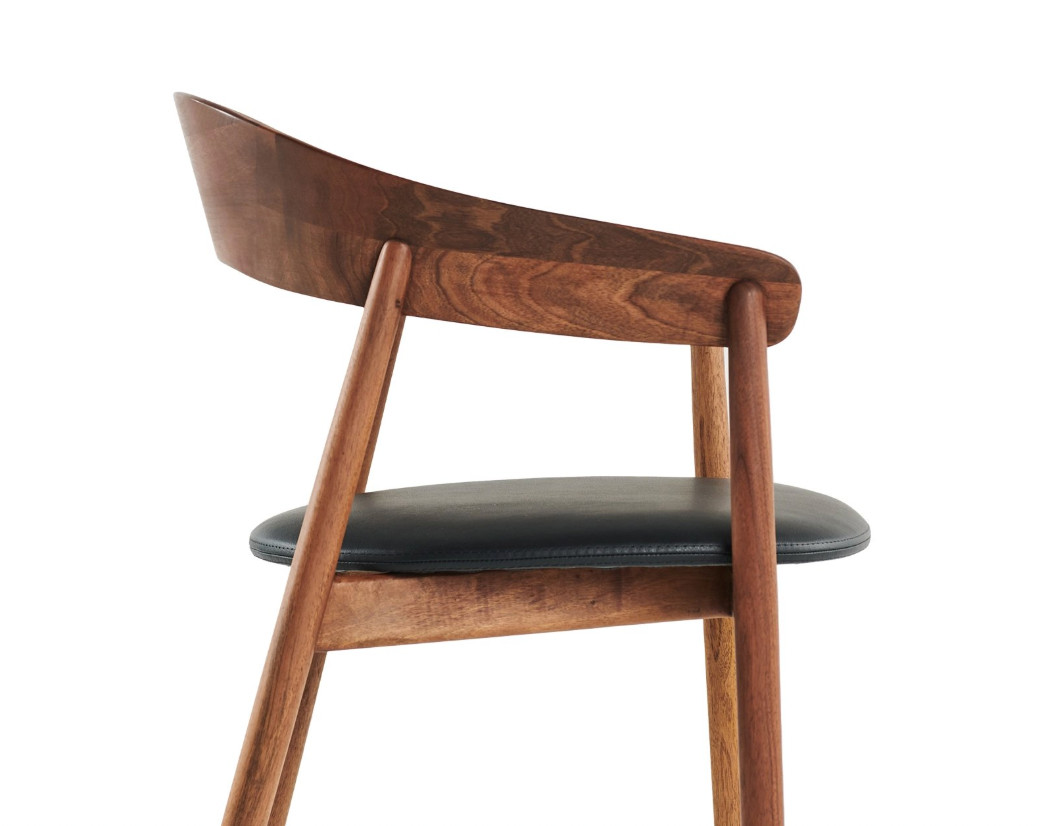 Naast de ergonomie nodigen de verfijnde oppervlakken uit tot extra tactiele verkenning. Uiterst dun en licht, en met de hand tot in perfectie afgewerkt door ervaren vakmensen. De zitting kan worden besteld in massief hout, of bekleed met leer of stof. Merk: ArtisanMateriaal: Europees notenhout / Amerikaans notenhout Afmetingen:B: 54...