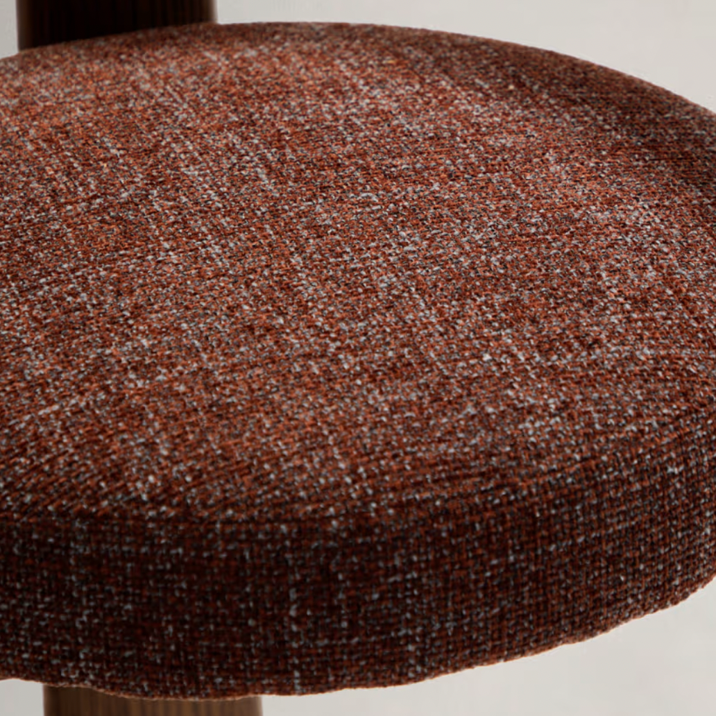 Deze stoel combineert strakke, dikke vormen met een jaren ’70 Scandinavische uitstraling. Elk detail is zorgvuldig afgewerkt voor een stijlvolle en persoonlijke touch in je eetkamer. Afmetingen: B 61 × D 53 × H 73 cm Materiaal: massief essenhout (donkere afwerking), chenille stof Kleur: bruin Onderhoud: reinigen met een vochtige...