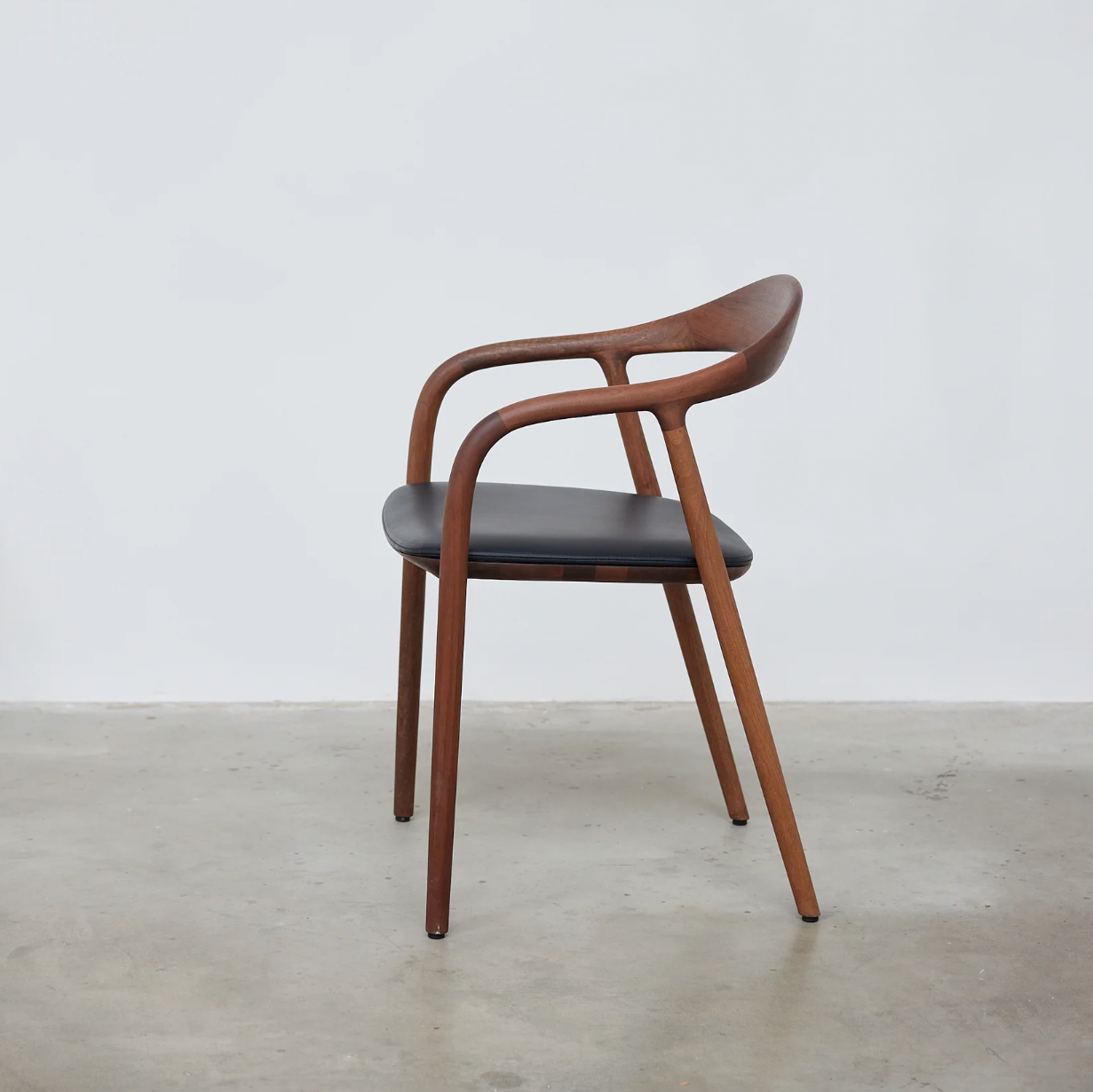 Beside the ergonomics, its delicate surfaces invite additional tactile exploration. Supremely thin and light and meticulously hand finished from experienced craftsmen. The seat can be ordered in solid wood, or upholstered with leather or fabric. Brand: ArtisanMaterial: European Walnut / American Walnut Measurements: W: 54 cm H: 76 cm D: 53 cm