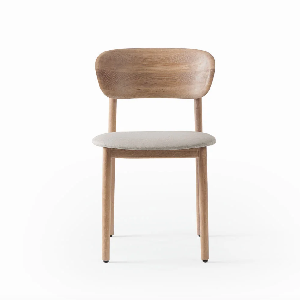 Design eetkamerstoel in massief hout. De gebogen rugleuning van met stoom gebogen massief hout en de afgeronde zitting zorgen voor een zeer comfortabele zitervaring in een minimaal pakket. De stoelen zijn verkrijgbaar in verschillende afwerkingen. Zitting mogelijk in stof of leder. Rugleuning en poten mogelijk in verschillende kleuren eikenhout of...