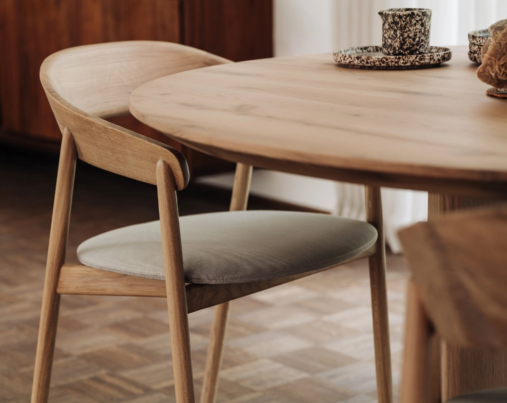 De klassieke charme van massief eikenhout met een formele, moderne structuur. Het ontwerp is tegelijkertijd licht en krachtig en daarmee de perfecte keuze voor mensen die op zoek zijn naar een mix van traditioneel en modern. Donkere eik met gestoffeerde zitting. De stof van de zitting is afneembaar en dus...