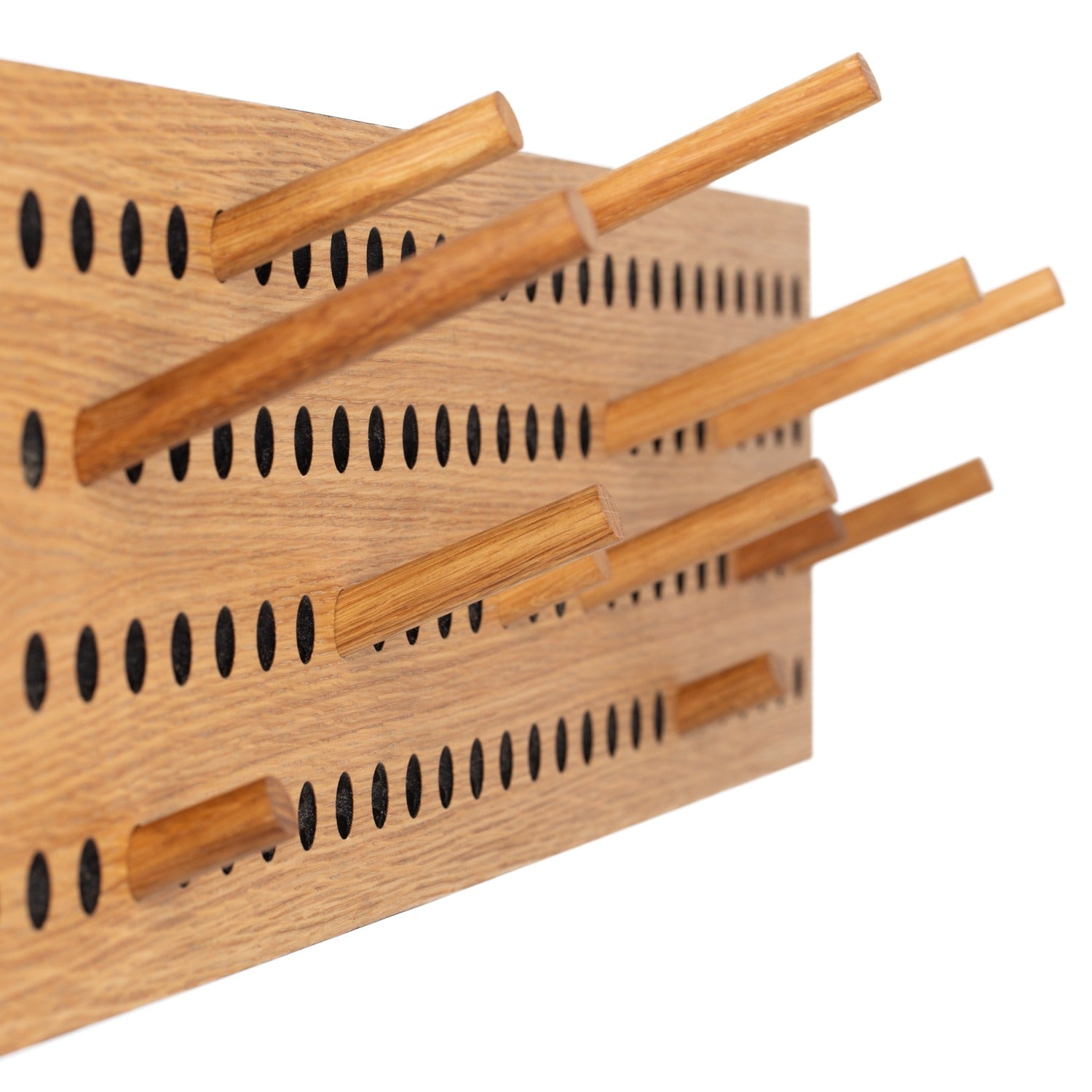 Het Scoreboard geeft een grafische uitstraling en is een unieke manier om favoriete items op te bergen. Met de 12 meegeleverde pinnen is de hoogte van de handgreep eenvoudig aan te passen, waardoor u de mogelijkheid krijgt om een persoonlijke toets te geven. Material: eik Afmeting: Lengte: 100 cm x hoogte: 18...