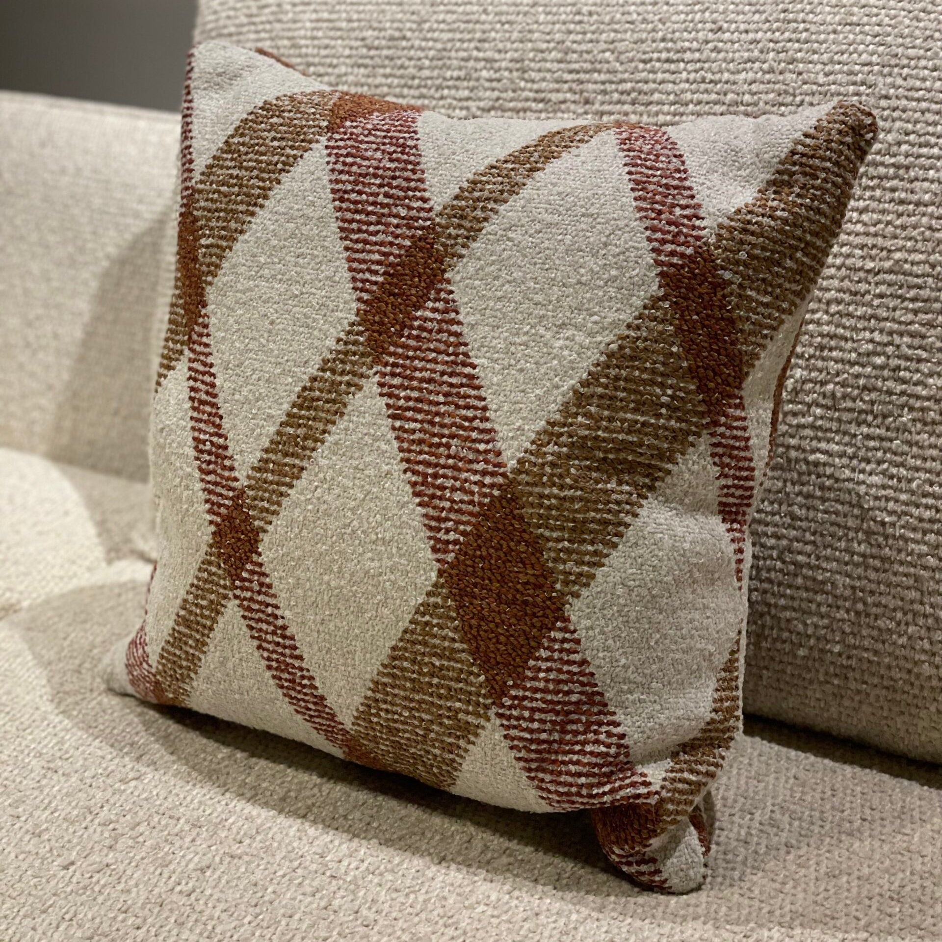 Luxueus kussen met heerlijke, tijdloze print. Een instant favoriet, ook geschikt voor buitengebruik. KENMERKEN Geschikt voor binnen- en buitengebruik Wind-, water- en UV-bestendig Gemaakt in België Afmetingen: 50 cm x 50 cm Kleur: terracotta - beige - mosterd