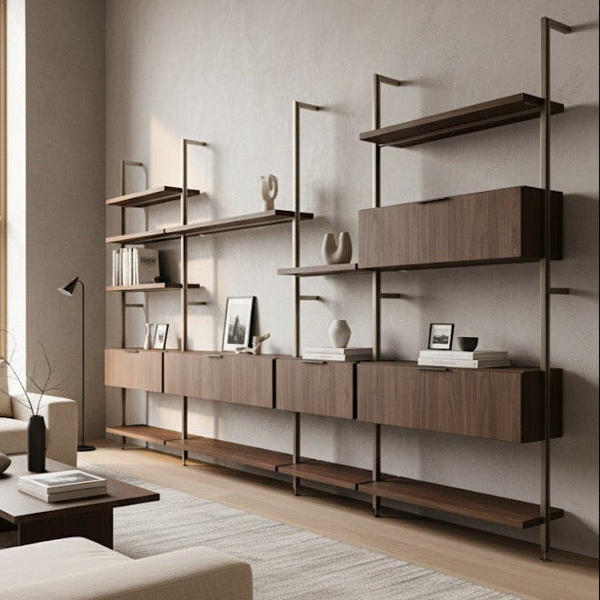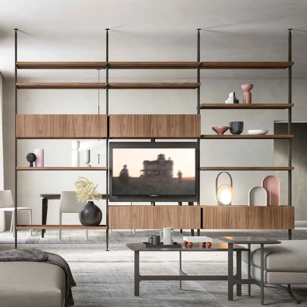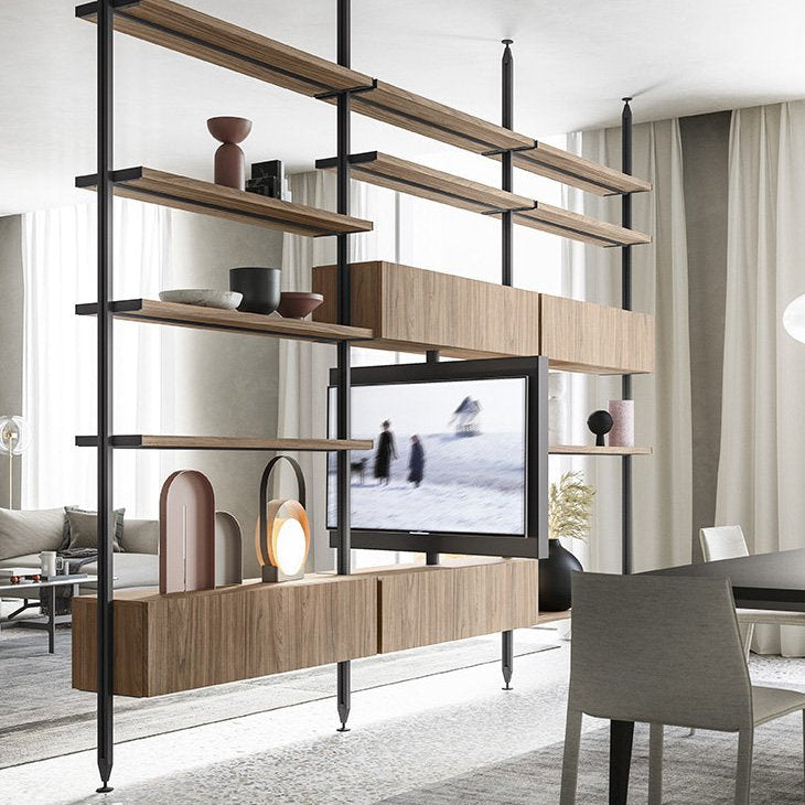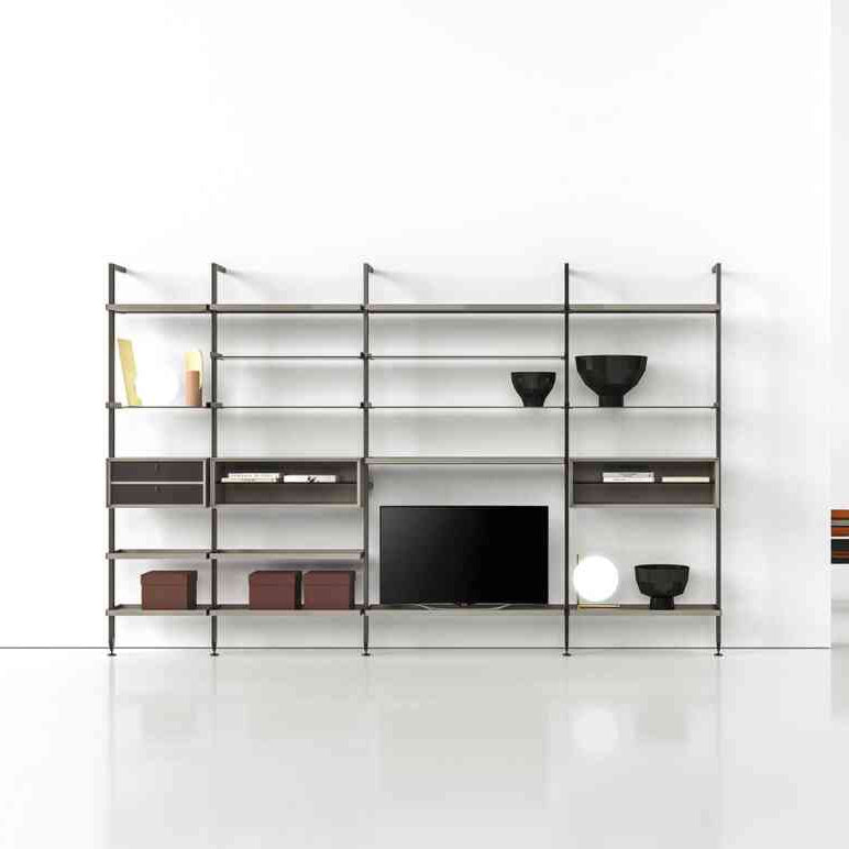 Dankzij de modulaire opbouw met staanders kunt u deze boekenkast geheel naar eigen wens samenstellen, maar bovenal kunt u dankzij de praktische bevestiging de opstelling later naar eigen wens aanpassen of integreren. Houten of glazen planken, bureaus, verstelbare tv-meubels en nog veel meer behoren tot de beschikbare accessoires. Bovendien vergroot...