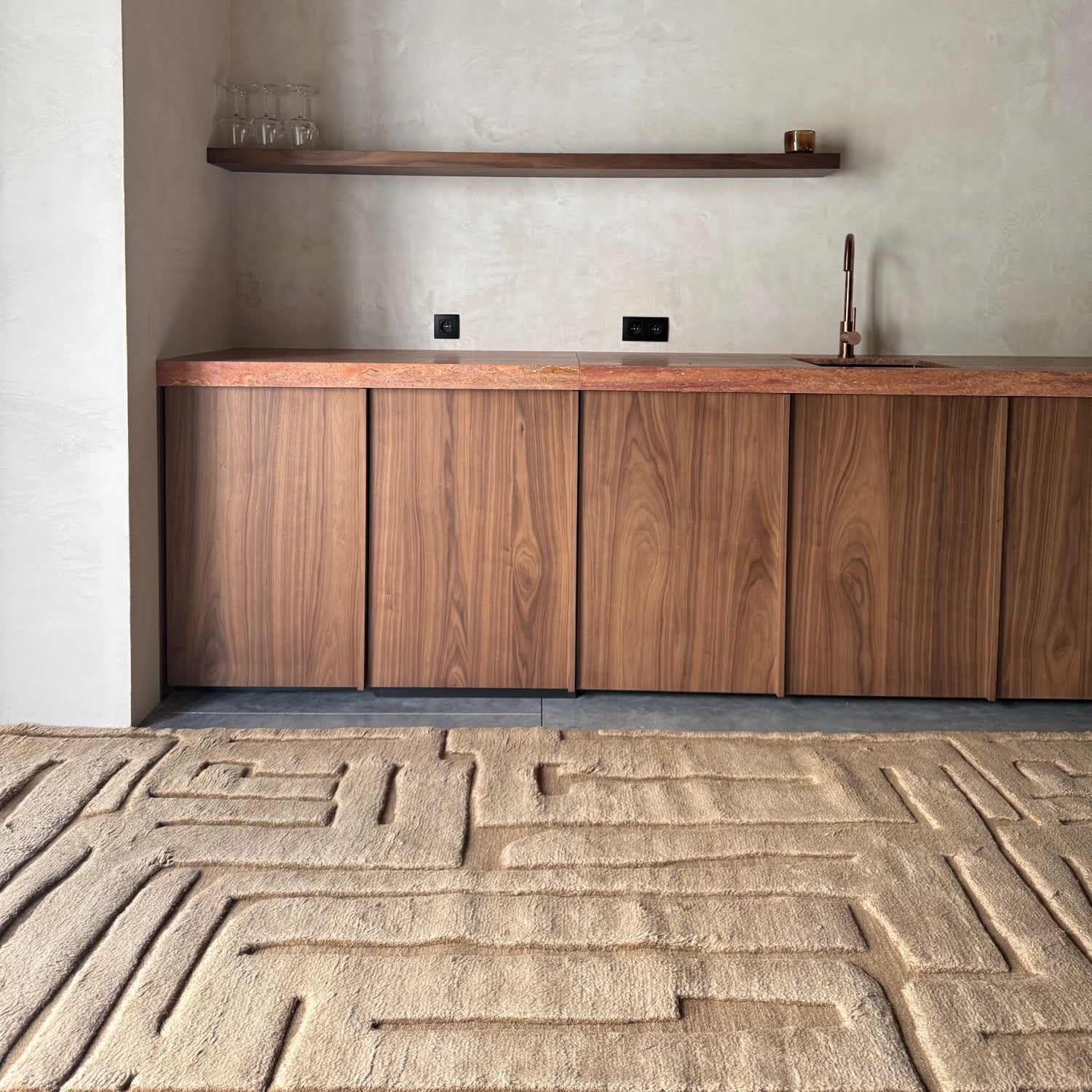 Een tapijt dat fluistert in textuur en ademt in stilte.