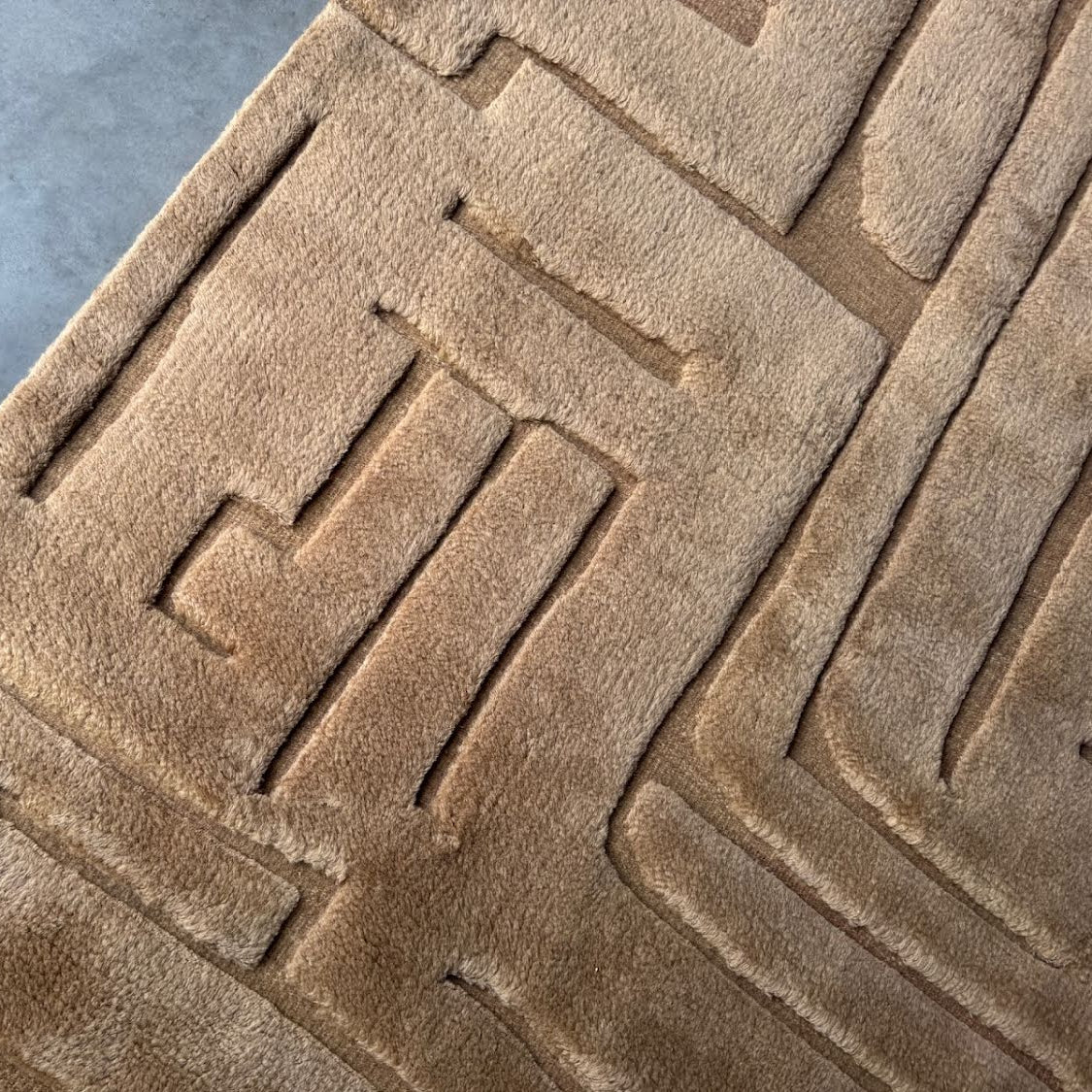 Met de hand geknoopt in zuivere wol, zorgvuldig geschoren om het contrast tussen hoog en laag perfect te laten spreken. Safa is ontworpen voor wie schoonheid zoekt in nuance, en comfort in eenvoud.