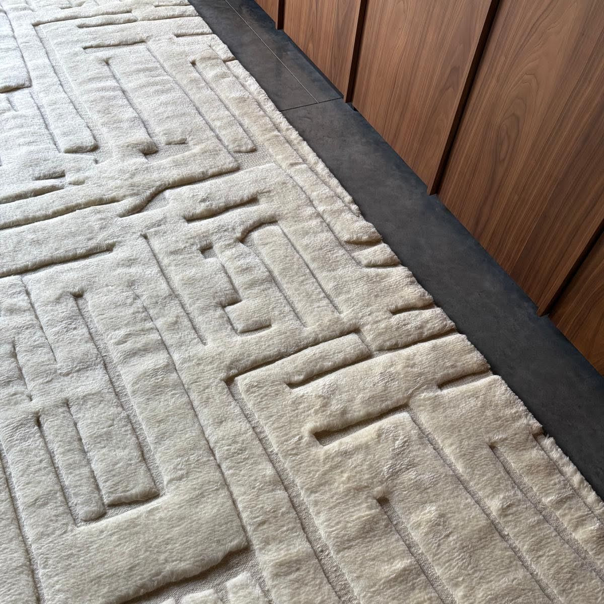 Met de hand geknoopt in zuivere wol, zorgvuldig geschoren om het contrast tussen hoog en laag perfect te laten spreken. Safa is ontworpen voor wie schoonheid zoekt in nuance, en comfort in eenvoud.