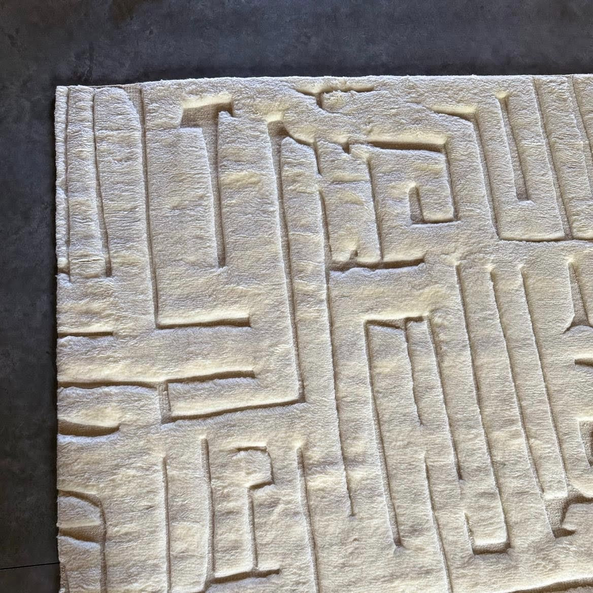 Met zijn hoog-laag reliëf roept Safa het gevoel op van architecturale lijnen, als een hedendaags labyrint dat uitnodigt tot rust en reflectie.