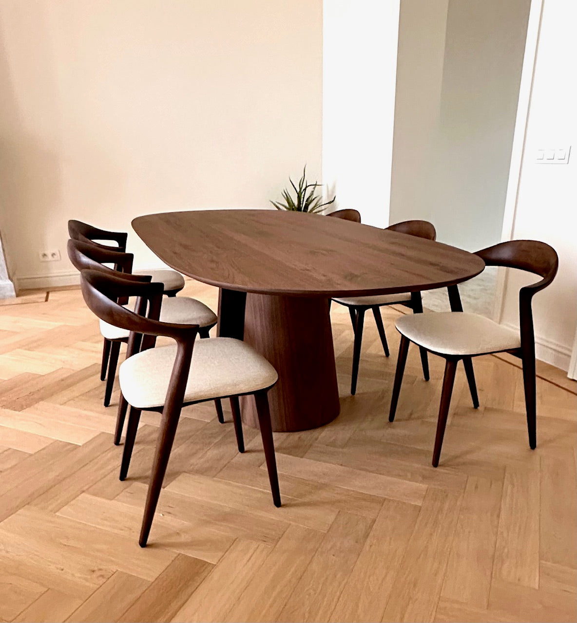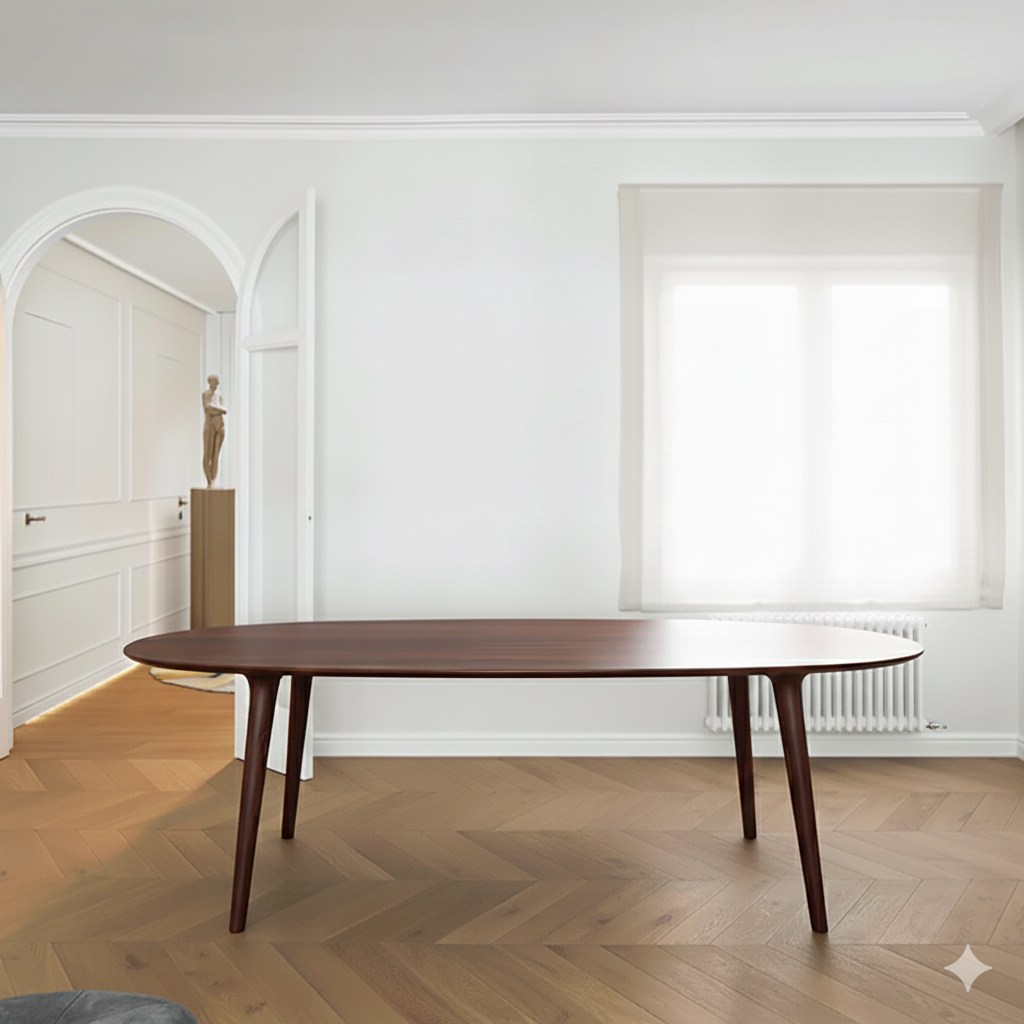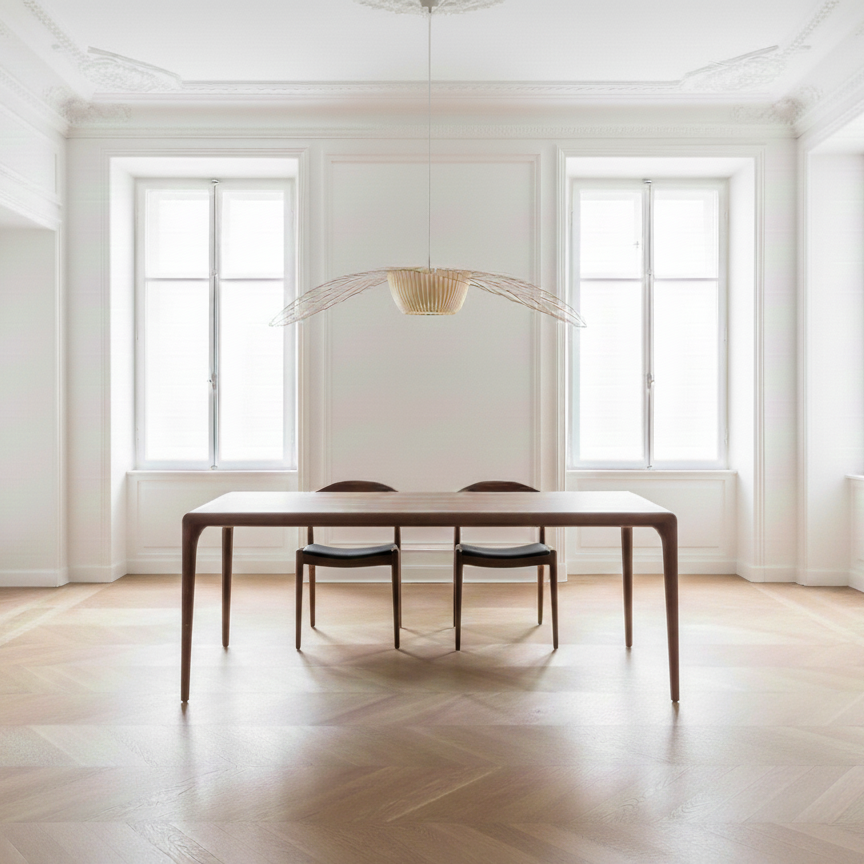Deze tafel is vervaardigd uit massief walnoot hout. Met de extra interne verstevigingen is de tafel bijzonder stabiel voor zijn fijne en elegante structuur. Er kan gekozen worden voor een afwerking in olie of vernis. Contacteer ons om het juiste advies te krijgen over welke bescherming het beste past bij...