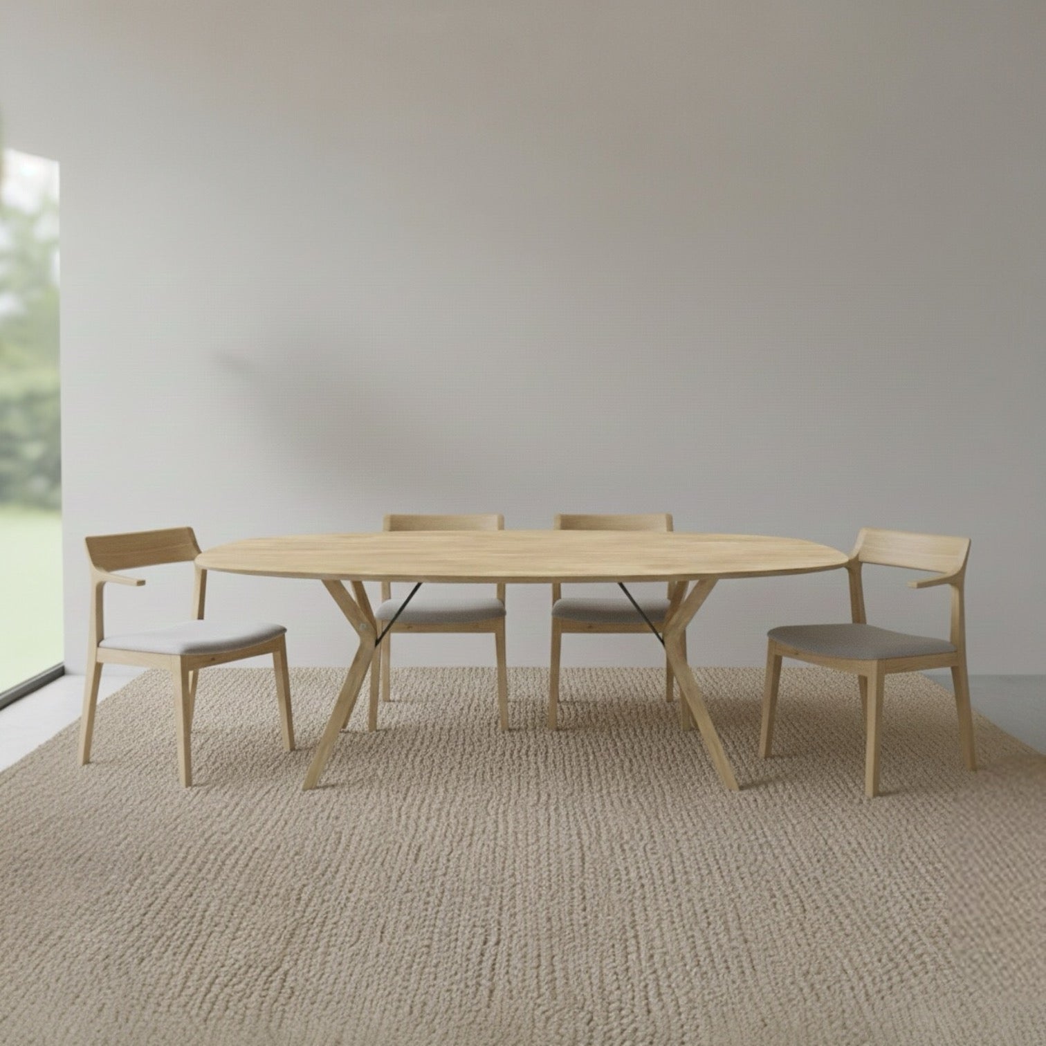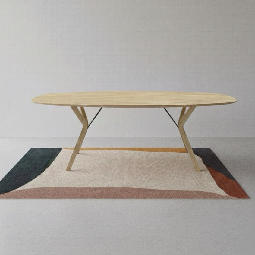 licht en slank design, afgeronde hoeken en een blad van massief hout. Deze tafel zorgt voor een cachet in de leefruimte. De stevige poten staan in het midden van de tafel zodat meer mensen bij elkaar kunnen zitten zonder elkaar te hinderen. Materiaal: EikAfmetingen: 115x140cm 135x160cm 135x180cm 105x160cm 105x180cm 105x200cm...