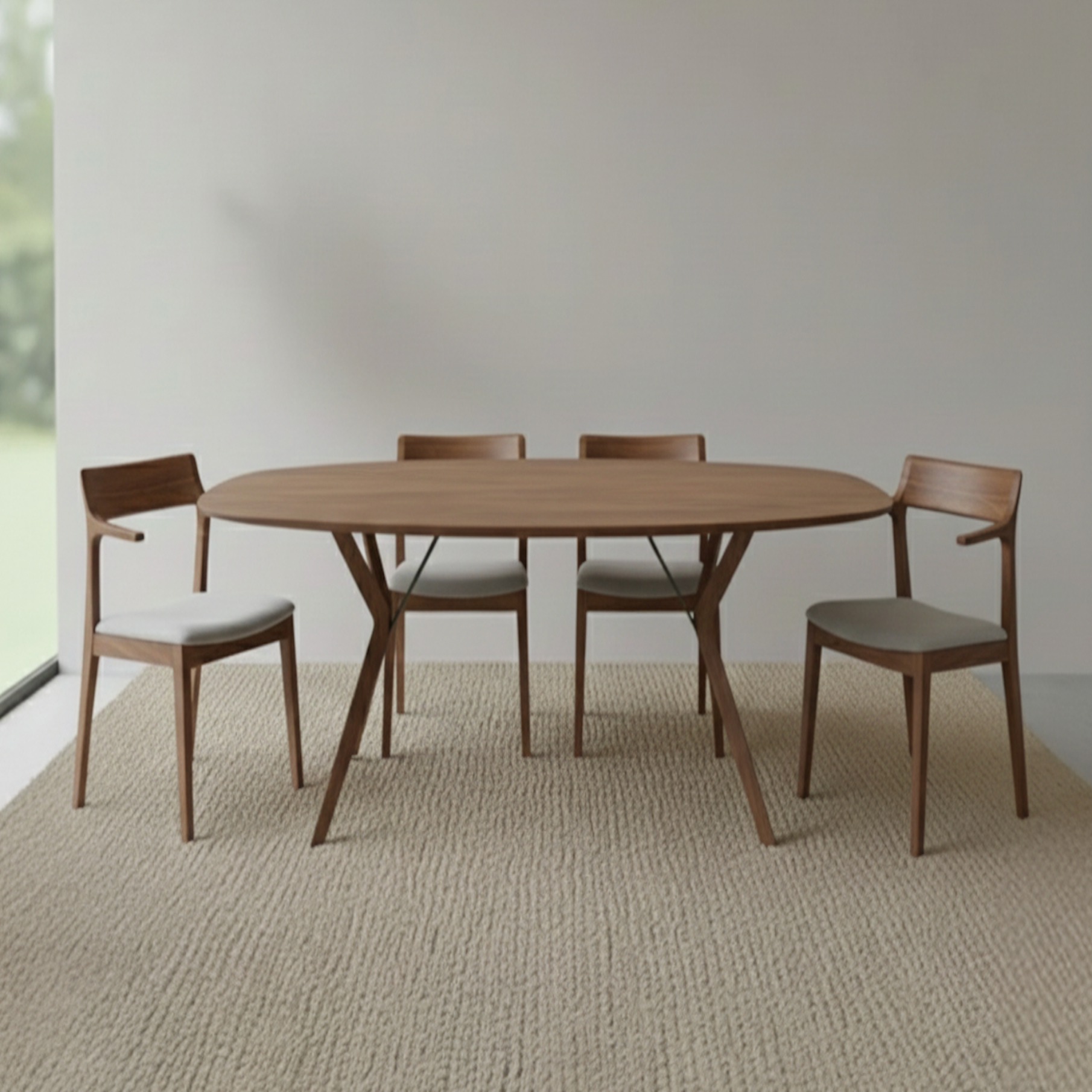 licht en slank design, afgeronde hoeken en een blad van massief hout. Deze tafel zorgt voor een cachet in de leefruimte. De stevige poten staan in het midden van de tafel zodat meer mensen bij elkaar kunnen zitten zonder elkaar te hinderen. Materiaal: WalnootAfmetingen: 115x140cm 135x160cm 135x180cm 105x160cm 105x180cm 105x200cm...