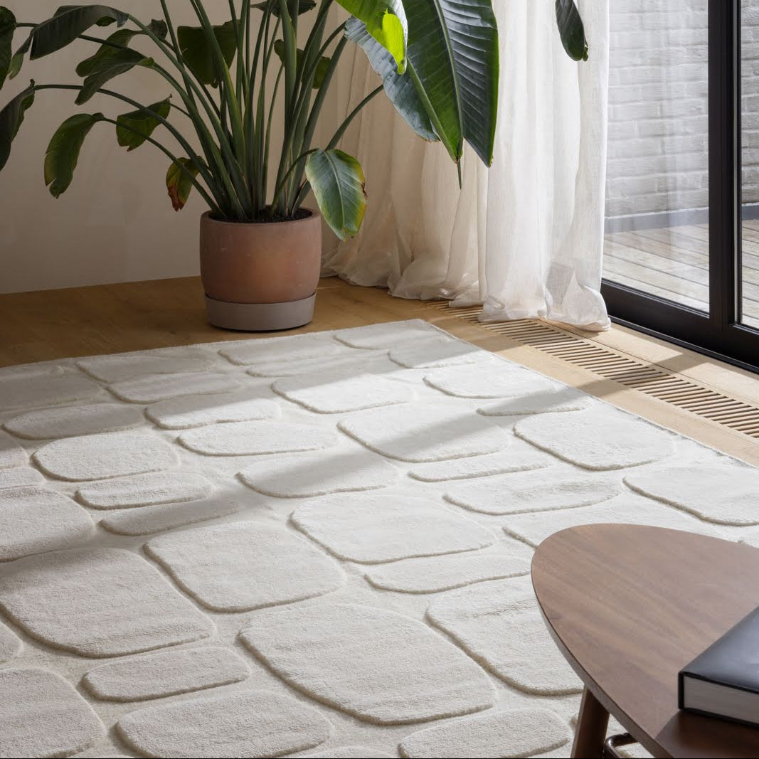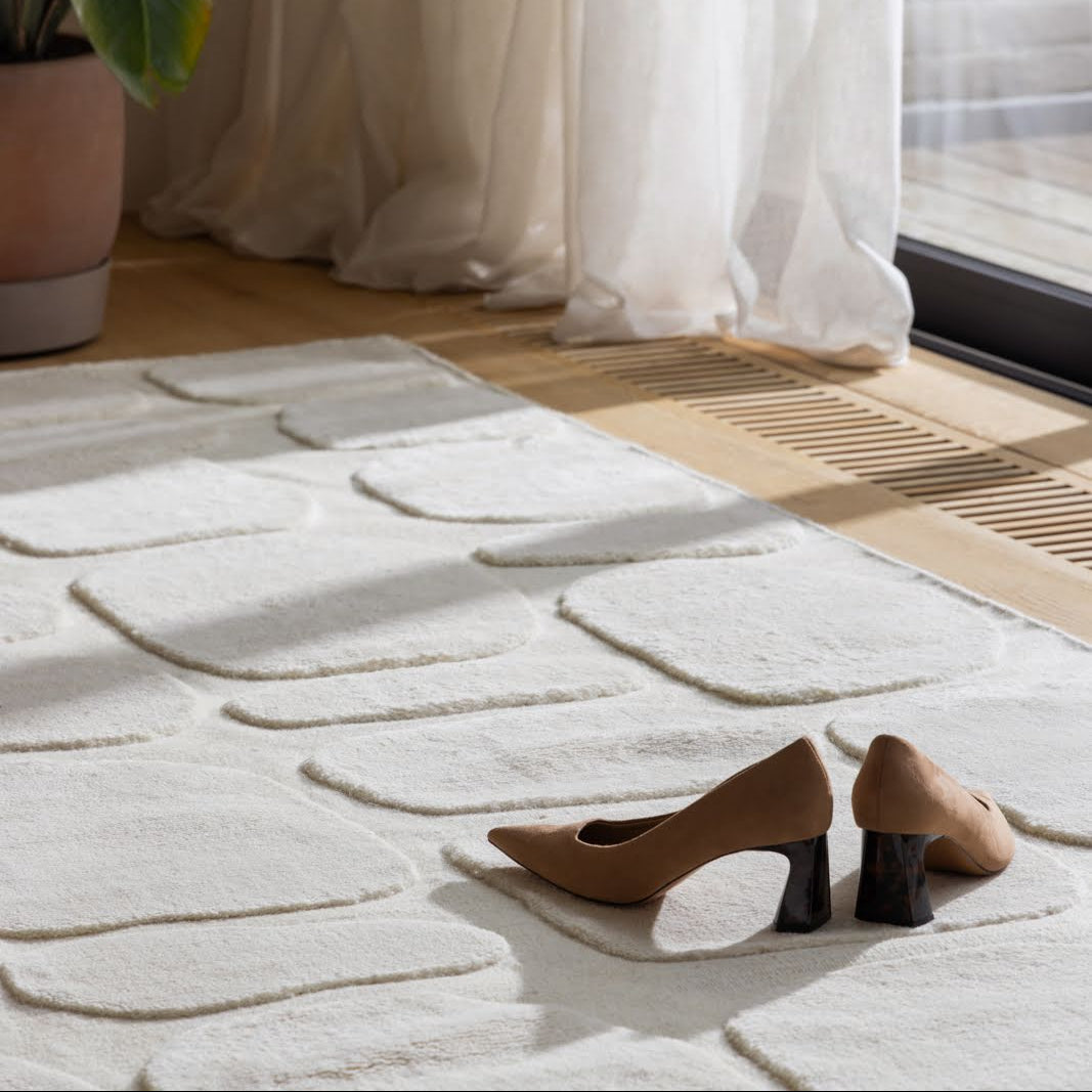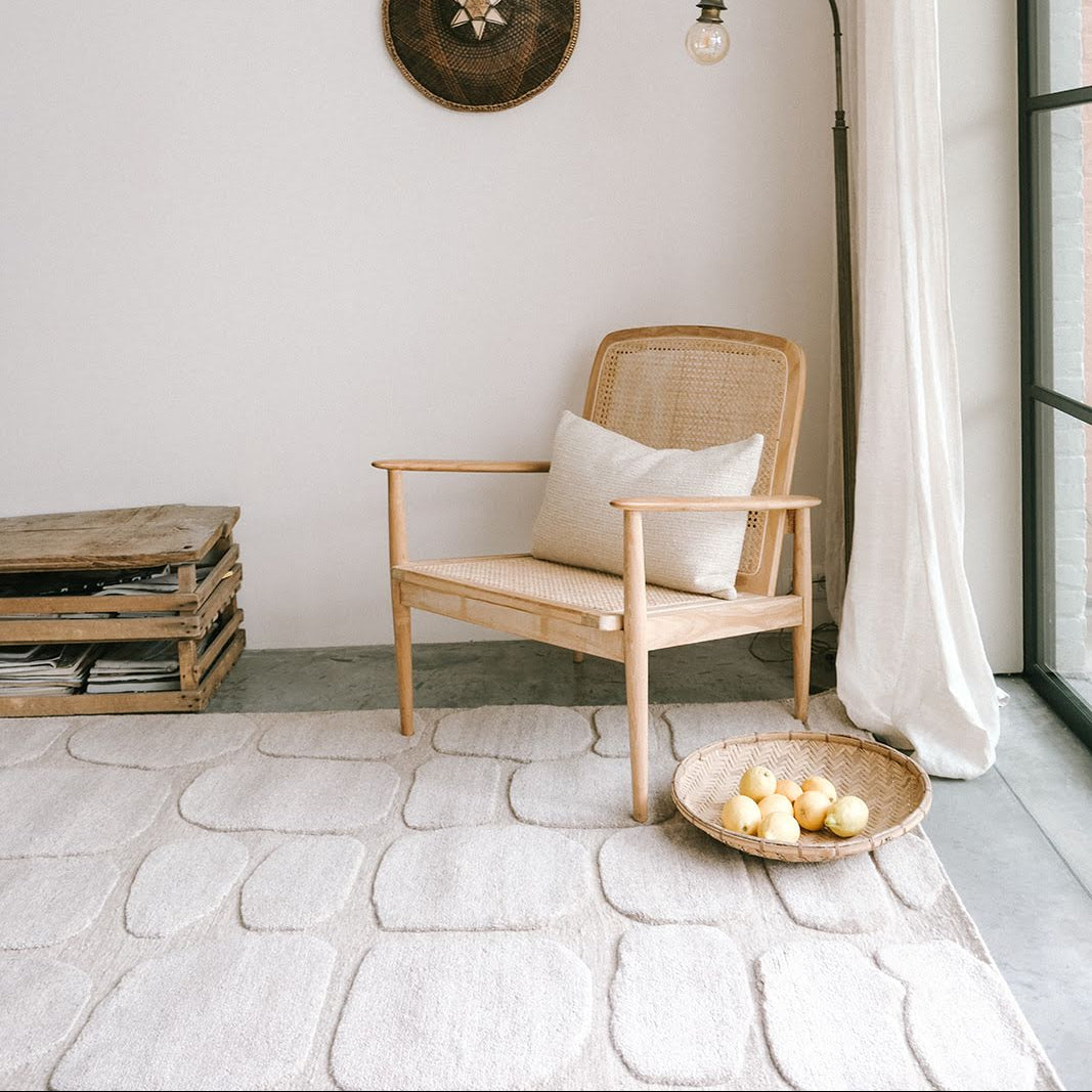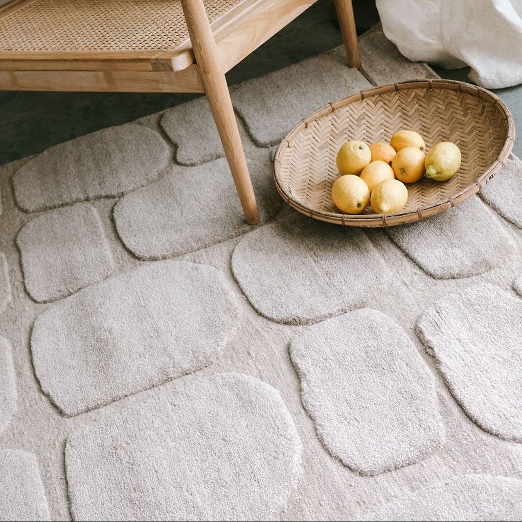 Met de hand geknoopt uit zachte Nieuw-Zeelandse wol en linnen, straalt het tapijt een ingetogen luxe uit.